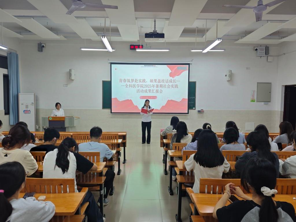 汇报会在秦金兰同学的主持下拉开序幕。来自校级立项团队及班级代表依次上台,通过多媒体展示、数据分析与案例讲解,系统呈现了暑期社会实践的丰硕成果。各团队实践内容涵盖基层医疗见习、返乡志愿服务等多个领域。从在基层一线医疗岗位见习的成长感悟,到返回家乡投身志愿服务的初心实践,汇报内容全面呈现了全科学子扎根基层、服务社会的责任担当与青春风采。