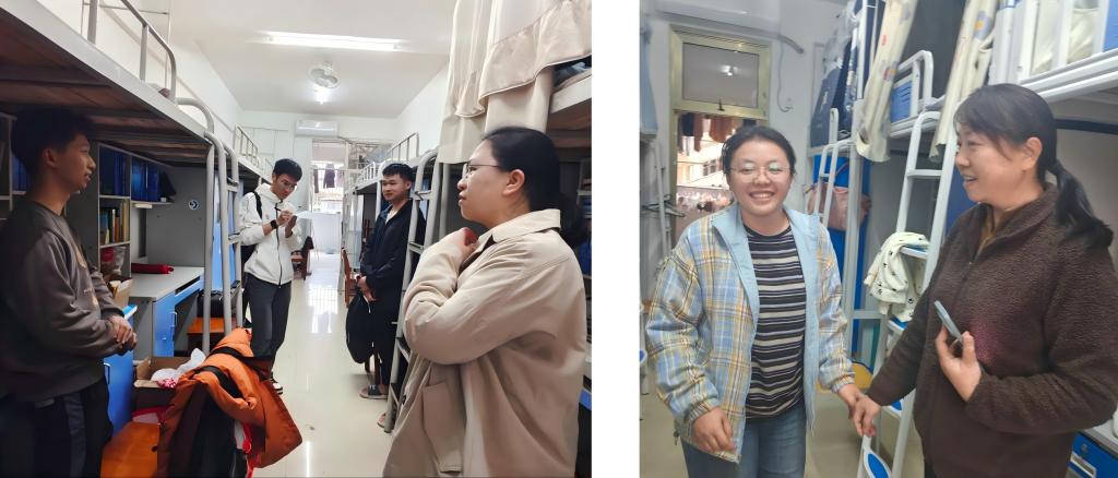 走访过程中,老师们与同学亲切交流,细致询问了同学们的假期生活、新学期适应情况及新学期学习规划。同时,老师们对宿舍用电安全、环境卫生及潜在安全隐患进行了检查,并细心叮嘱大家增强安全意识、反诈意识、遵守宿舍管理规定,共同维护良好的生活环境。恰逢元宵佳节,老师们还特意提醒同学们向家人送去节日祝福,分享在校近况,让远方的亲人安心、暖心。