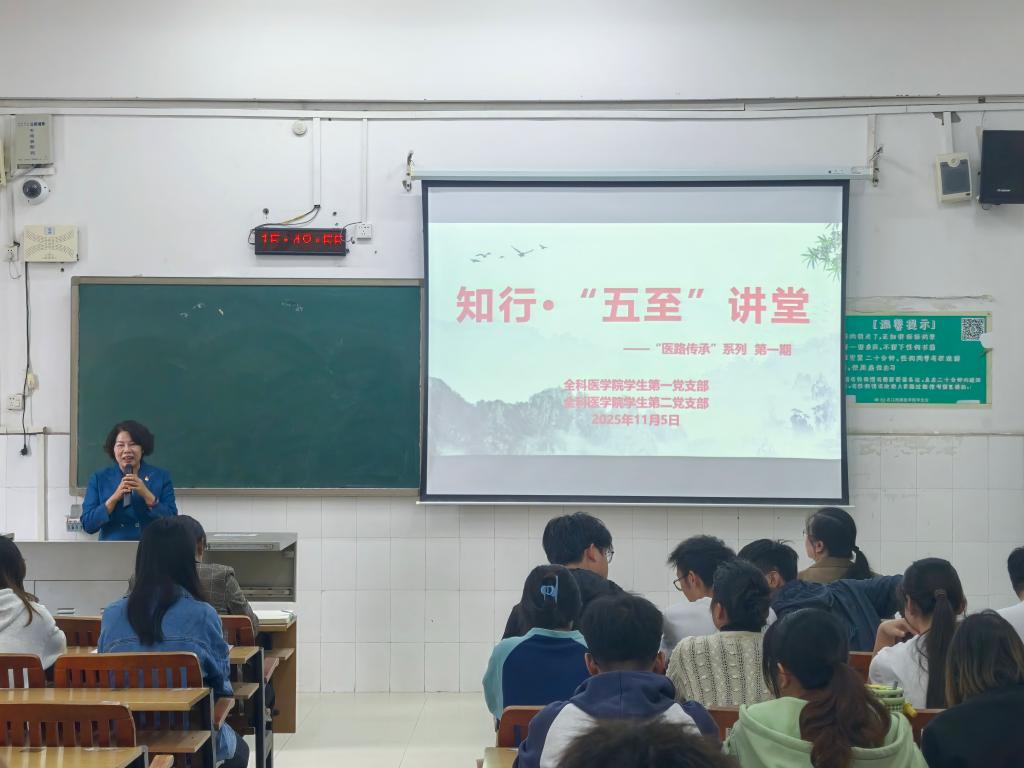 为全面深化学生的职业素养,全科医学院“五至”讲堂正式推出“叙事之声”与“医路传承”两大系列讲座,分别聚焦叙事医学实践与医者成长路径。11月5日,首讲在6栋407教室顺利举行,活动由教师党支部副书记雷婷主持,近40名师生代表参与。